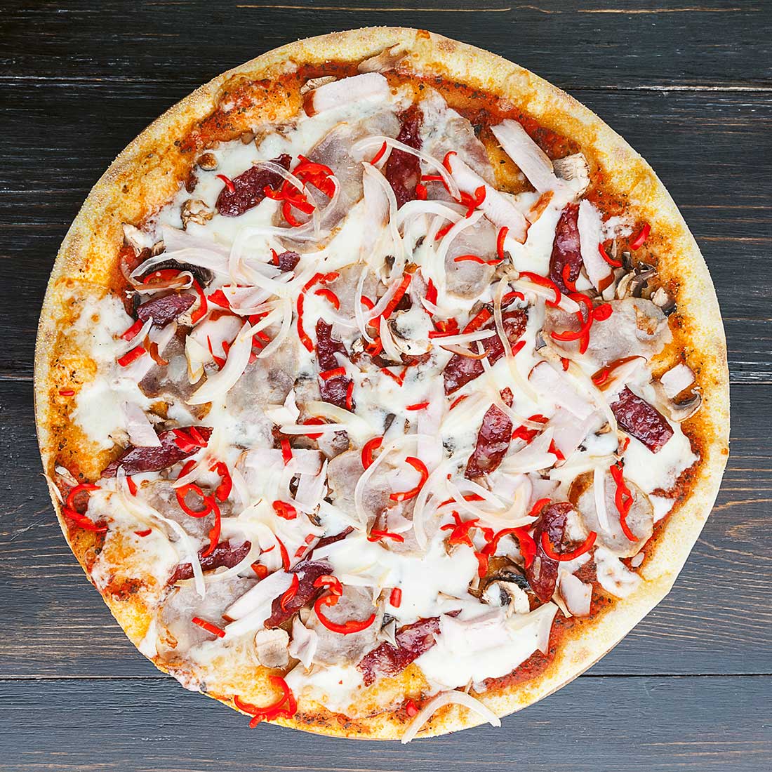 Tomato sauce, Mozzarella, Salmon, Garlic
